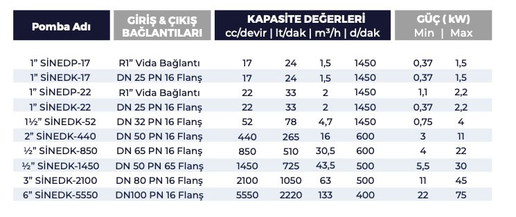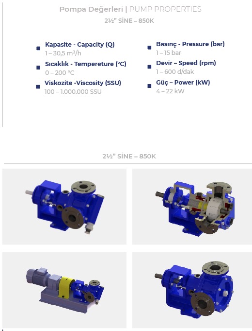 POMPA TİPİ: İÇTEN EKSANTRİK DİŞLİ |