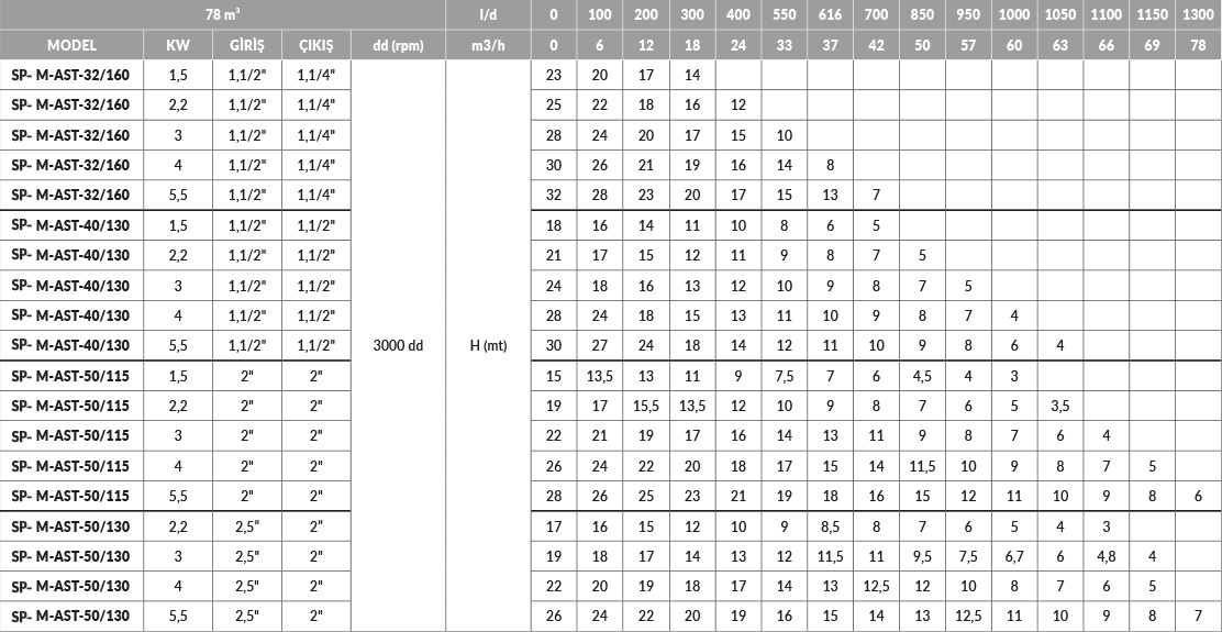 Sıvı basma sıcaklığı -15 °C ile +110 °C arasında değişebilir. Daha özel mekanik salmastra kullanılması halinde pompanın maksimum sıvı basma sıcaklığı 120 °C’ ye kadar arttırılabilir.