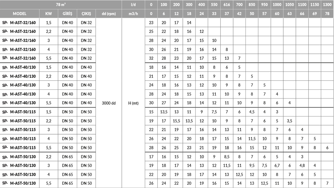 Sıvı basma sıcaklığı -15 °C ile +110 °C arasında değişebilir. Daha özel mekanik salmastra kullanılması halinde pompanın maksimum sıvı basma sıcaklığı 120 °C’ ye kadar arttırılabilir.